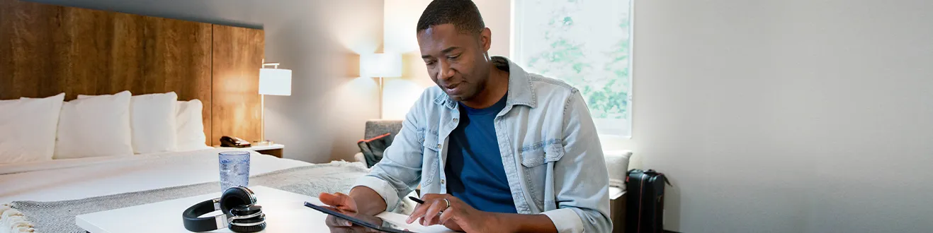 Join our Extended Perks loyalty program to get discounts on thousands of local and national brands and save on things like dining, rental cars, theme parks, salons, online and retail shopping and entertainment. And, we offer bigger discounts with a STAY longer. Save more.® discount when you're staying for a week, a month or longer. Whether you're traveling from overseas or from around the corner, Extended Stay America is a place where genuine care is always there. For the best rates on hotels for business travelers, choose Extended Stay America.